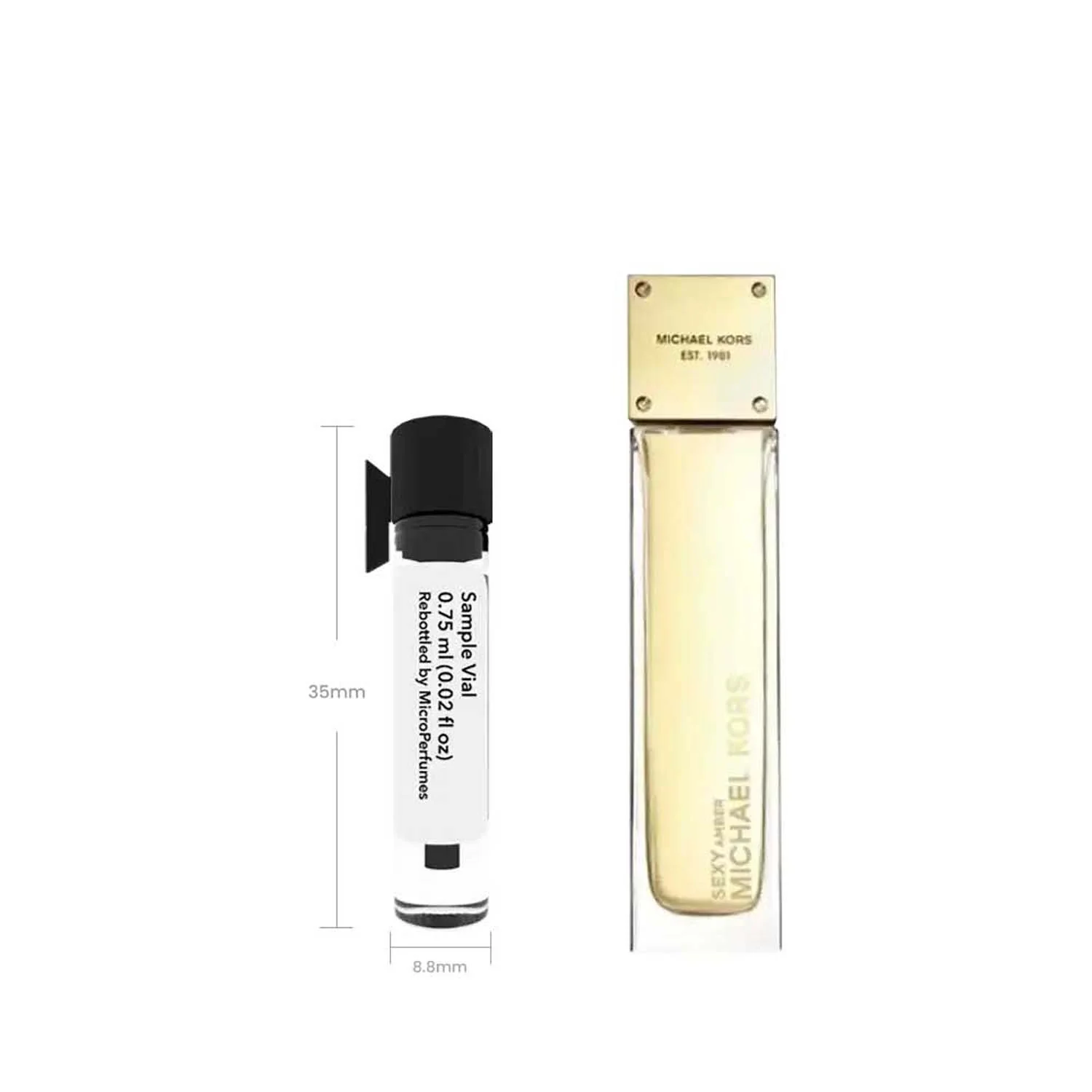 Sexy Amber by Michael Kors envelops with a rich fusion of warm amber, creamy sandalwood, and delicate white florals, projecting an aura of sophisticated allure. This captivating fragrance is ideal for intimate evening gatherings and elegant cooler-weather occasions. Independently rebottled by MicroPerfumes, this 0.75 ml sample vial provides enough fragrance for several wears, making it a low-risk way to explore a new scent without commitment.